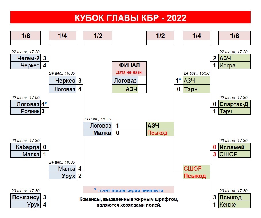 Отметим, что в нынешнем розыгрыше Кубка Главы все матчи проходят в упорной борьбе. Оба финалиста прошли по кубковой сетке с большим напряжением. «АЗЧ» в 1/8 финала преодолела сопротивление «Искры» лишь в один мяч, а с «Тэрчем» победа пришла лишь в серии пенальти. «ЛогоВАЗ» в двух матчах (с «Черкесом» и «Малкой») добился победы в один мяч, а с «Родником» основного времени не хватило.