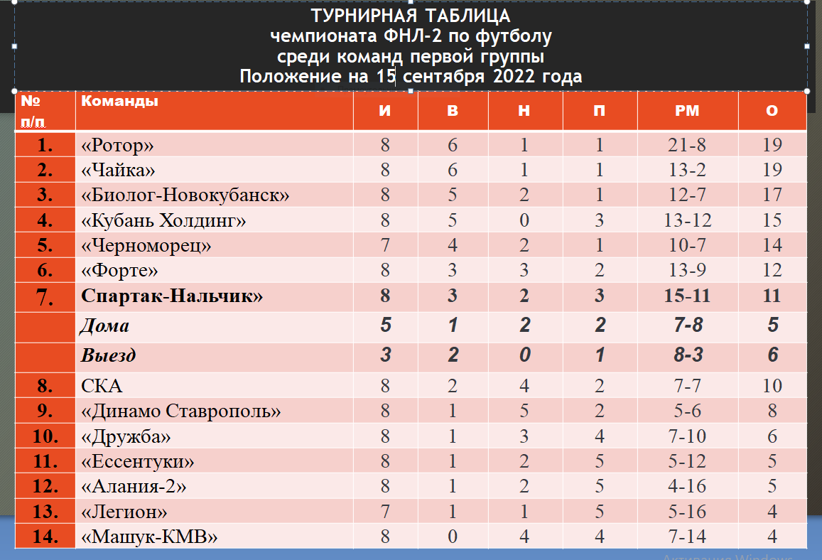 В 9-м туре, в понедельник 19 сентября нальчане сыграют в Ставрополе против местного «Динамо».