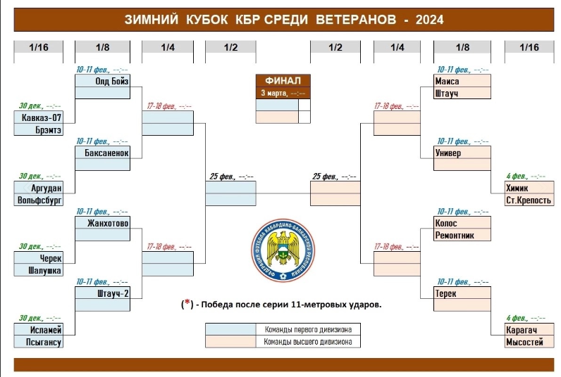 Сетки Кубка федерации т Кубка ветеранов даны в иллюстрациях.