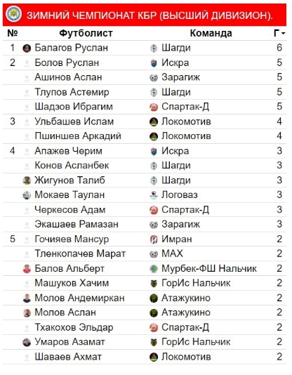 Форвард «Зарагижа» Аслан Ашинов матч 4-го тура пропускал из-за дисквалификации. Этим воспользовался его конкурент нападающий «Шагди» Руслан Балагов. Он забил мяч в ворота команды «МАХ» и единолично возглавил бомбардирскую табель о рангах с шестью забитыми мячами.