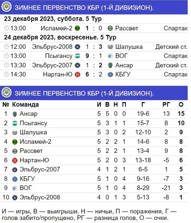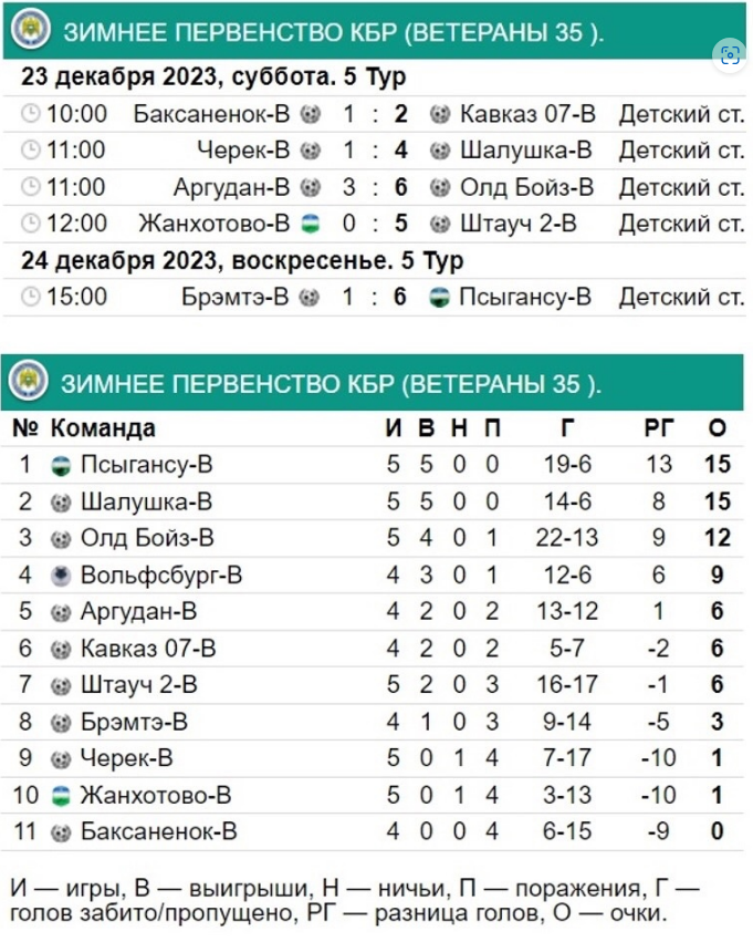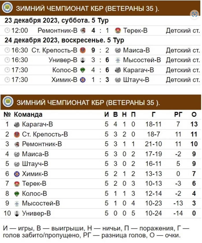 Результаты матчей 5-го тура и актуальная турнирная таблица первого дивизиона, чемпионата и первенства ветеранов (35+) даны в иллюстрации.