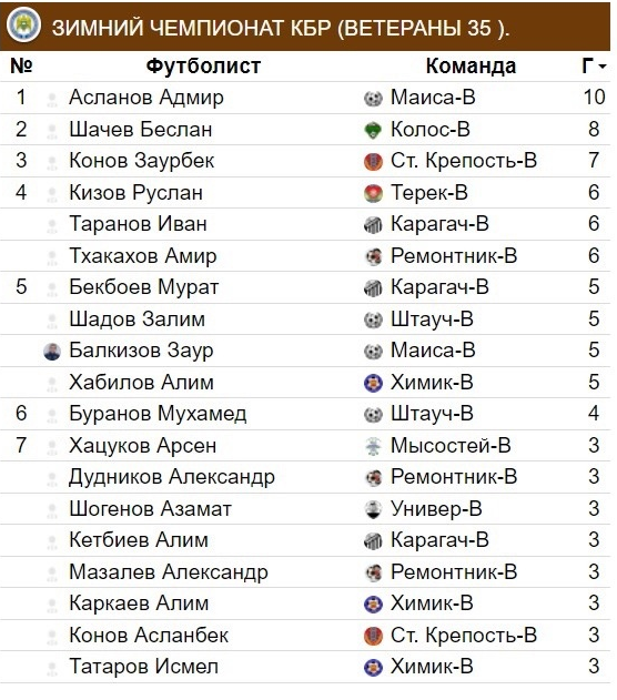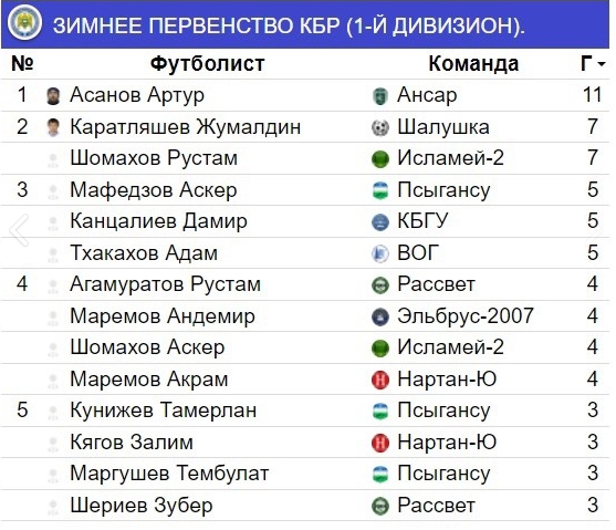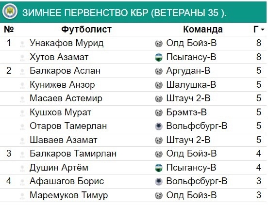 Бомбардирские ведомости первого дивизиона, чемпионата и первенства ветеранов (35+) после 5-готура даны в иллюстрации.