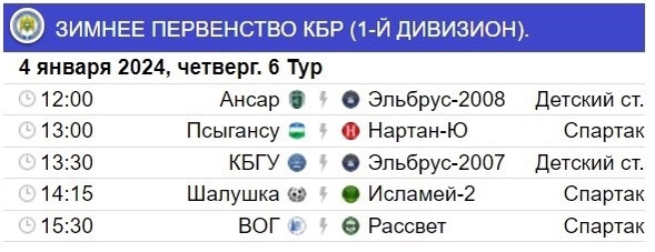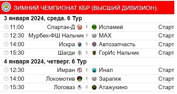 3 и 4 января состоятся матчи 6-го тура в высшем и первом дивизионах зимнего чемпионата КБР.