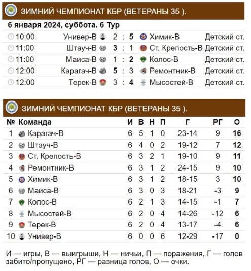 В чемпионате ветеранов наступила некоторая ясность. Лидер турнира «Карагач», как обычно выиграл. А основные преследователи синхронно проиграли. И если поражение «Ремонтника» ожидалось (в соперниках был «Карагач»), то проигрыш «Старой крепости» от «Штауча» - это мини-сюрприз. В результате «Штауч» уже на втором месте.