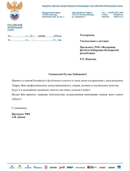 Президенту Федерации футбола Кабардино-Балкарской республики